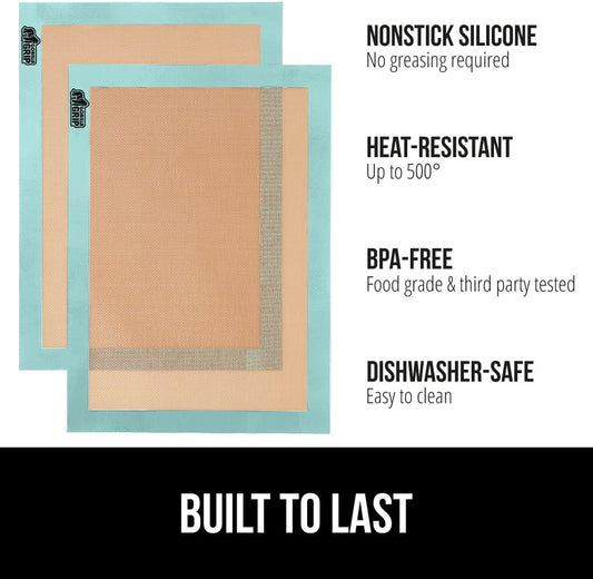 GORILLA GRIP Reusable Nonstick Silicone Baking Mat, 2 Pack, 16.5x11.87, BPA-Free Oven Safe Food Liner, For Cookie Sheets, No Mess Easy Clean Pastry Mats, Kitchen Essential, Half Sheet Size, Mint