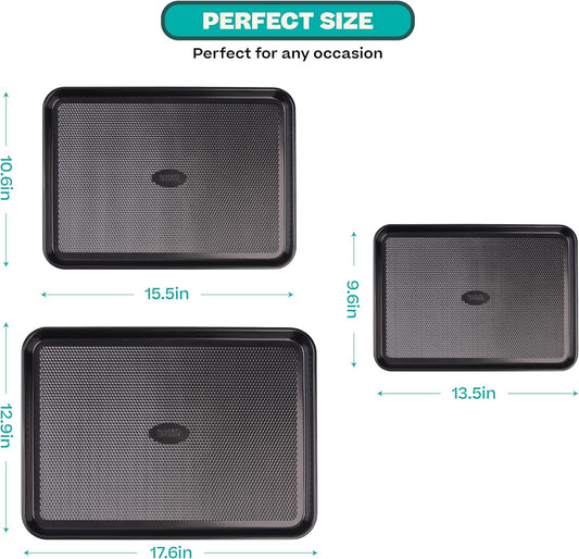 Baker's Secret Baking Sheet Pan Set, 3x Cookie Sheets for Oven, Diamond Texture Premium Air Flow Circulation, Set of 3 Baking Trays, Extra Thick 0.6mm with Diamond Base PFOA, PFOS, PTFE and PFAS free