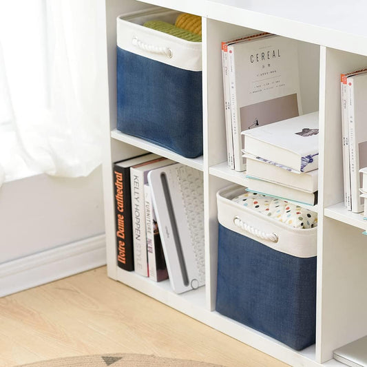 TcaFmac Organization and Storage Cubes - 12x8x5.2 inch Small 6 Pack Collapsible Storage Bins for Sheves, Fabric Storage Basket for Gifts Empty for Closet Cloth Toy Kids Books(White & Jean Blue)