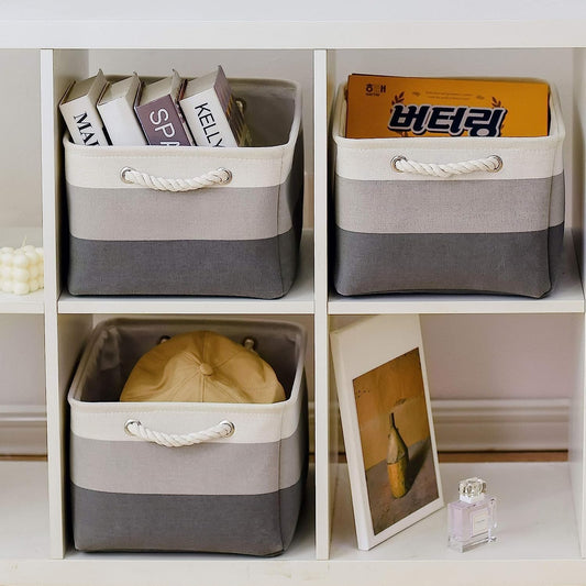 TcaFmac Collapsible Storage Bins for Organization - Large 3 Pack Canvas Storage Basket for Shelves, Organizer Baskets for Organizing for Closet Cloth Dog Toy Baby (White & Grey 16x12x8 inch)