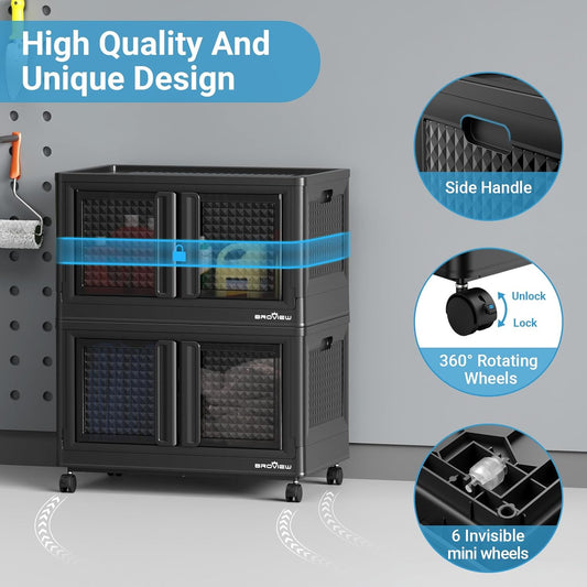 100Qt Stackable Storage Bins with Lids, 25Gal Closet Organizers and Storage Drawer, Plastic Collapsible Storage Bins with Doors, Heavy-Duty Store Box Cabinet for Home Office, 1Pack Black