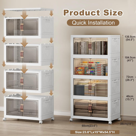 SAILUN 331QT/82 Gal Extra Stackable Storage Bins Large Collapsible Storage Bins with Wheels and Lid, Open Front Folding Closet Organizers and Storage,4Pack 23.6" W x 15" D x 54" H