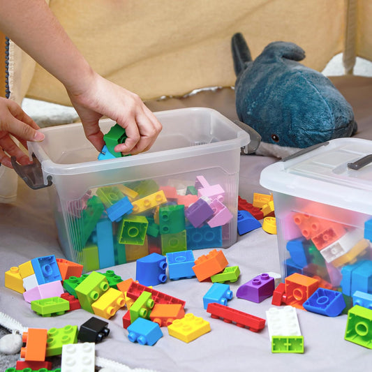 Citylife 6 Packs 8.5 QT Storage Bins with Lids Clear Plastic Bins with Grey Handle Stackable Storage Containers for Organizing