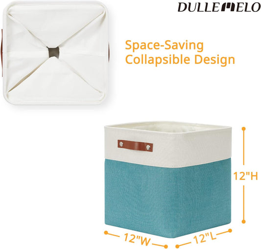 DULLEMELO Square Storage Cubes Baskets for Gifts Empty, 12 inch Cube Stroage Bins Linen Closet Organizers and Storage Baskets for Toy Nursery Shelves Bedroom Storage(4 Pack - 12" White&Teal)