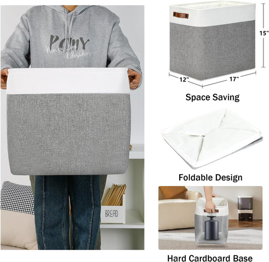 DULLEMELO Storage Baskets 17 inch Large Basket for Blanket Living Room, Foldable Storage Bins Baskets for Organizing [3 Pack] Blanket Storage Baskets Organizer for Home,Office,Closet(White&Grey)