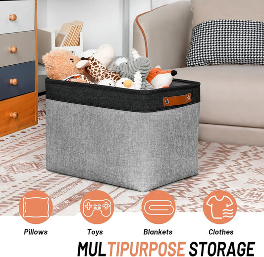 DULLEMELO Fabric Storage Bins - Decorative Large Baskets for Home Shelves & Bedroom, Canvas Toy Organizers (Black & Gray)