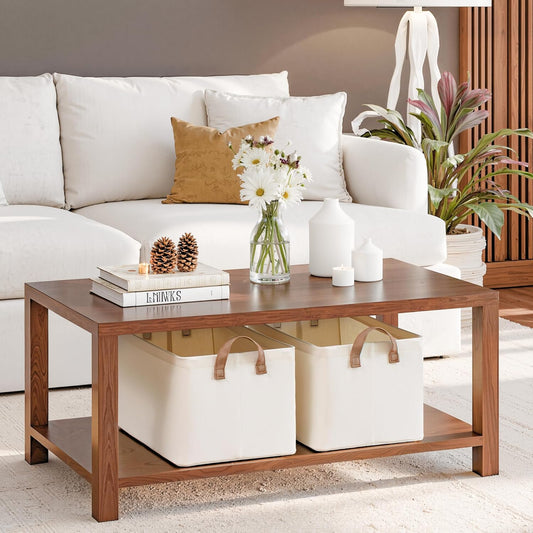 Organization and Storage Basket for Organizing - 17X15X12 inch 2 Pack Collapsible Baskets for Shelves, Fabric Storage Cubes with Rope, Storage Box for Cloth Decorative Gift (Beige)