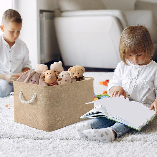 Storage Basket Fabric Sturdy Canvas Storage Bins Organizer with Handles for Clothes and Storage Foldable Storage Boxes Cubes
