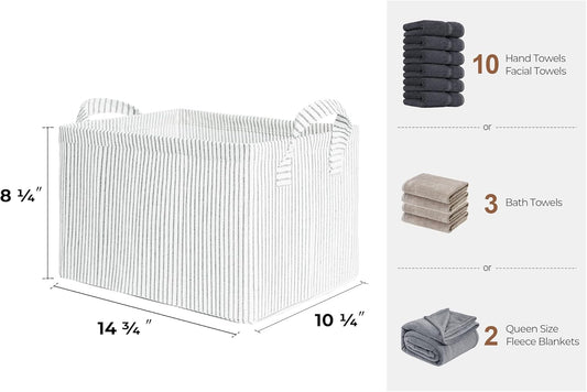 StorageWorks Storage Bins, Fabric Storage Bins for Shelves, Storage Baskets with Metal Frame, Closet Baskets and Bins with Handles, Gray and White Stripes, 2-Pack