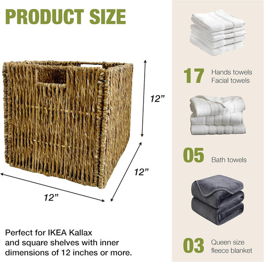4 Pack Collapsible Storage Bins - 12x12 Wicker Storage Cubes, 12 inch Storage Baskets For Organizing, IKEA Shelves, Kallax Inserts, Closet, Office – Foldable Storage Basket For Shelves, Toys, Clothes
