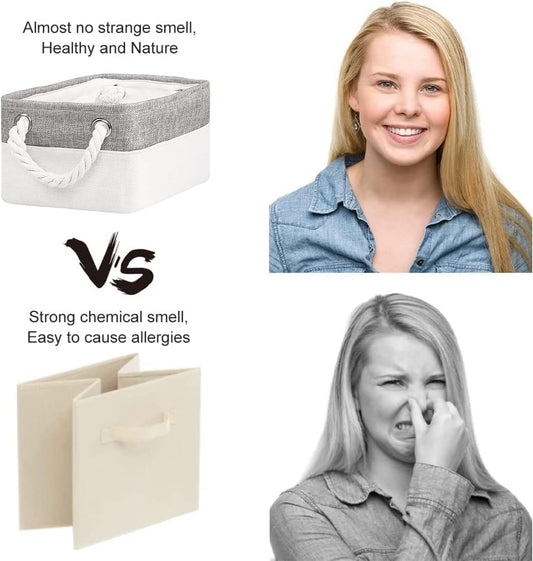 Small Fabric Storage Baskets (6-Pack), Foldable Gift Baskets with Rope Handles for Home & Office Organization