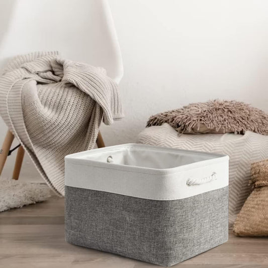 Storage Bins - Storage Baskets for Shelves Storage Cubes with Handles Small Baskets for Organizing (Gray and White 11.8 x 7.9 x 5.2 inch)