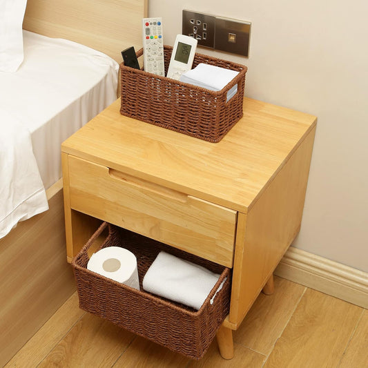 HOONEX Storage Baskets for Organizing, Decorative Round Paper Rope Woven Baskets for Storage with Carrying Handles, Set of 2, Dark Brown