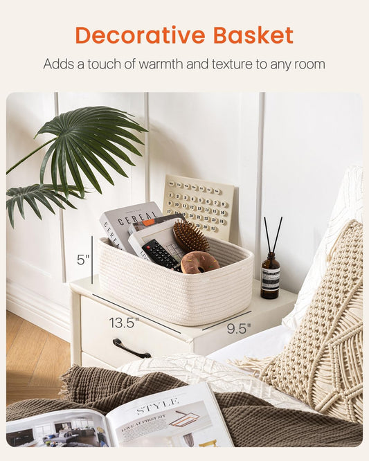 Small Woven Basket, 13.5 x 9.5 x 5 Inches, Storage Basket for Organizing, Cute Small Rope Shelf Closet Cube Storage Bins Baskets for Shelves, Dog Toy Gift Baskets Empty, 3 Packs, Off White