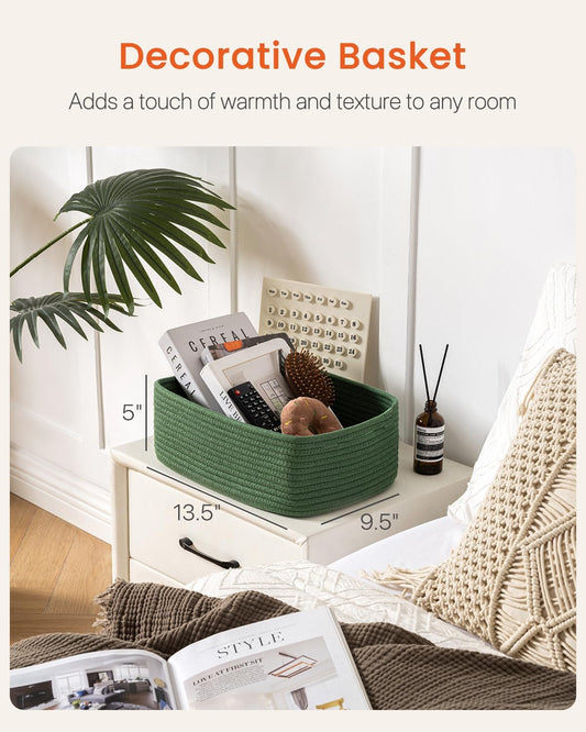 Small Woven Basket, 13.5 x 9.5 x 5 Inches, Storage Basket for Organizing, Cute Small Rope Shelf Closet Cube Storage Bins Baskets for Shelves, Dog Toy Gift Baskets Empty, 3 Pack, Green