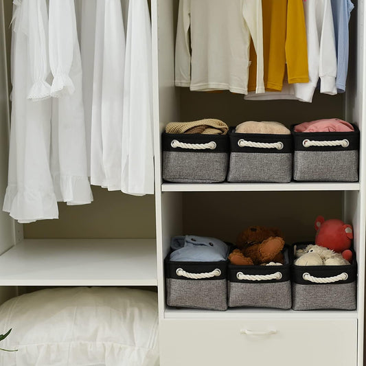 TheWarmHome Storage Bins for Shelves - 6 Pack 11.8x7.8x5.2 inch Collapsible Storage Cubes, Basket for Gifts Empty Closet Organizing Dog Toy Box (White & Black)