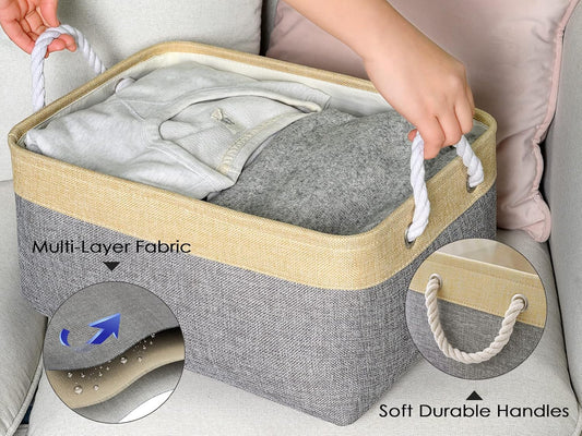 TheWarmHome Decorative Basket Rectangular Fabric Storage Bin Organizer Basket with Handles for Clothes Storage (Gold&Grey, Medium-1Pack,13.8L*9.8W*6.7H)