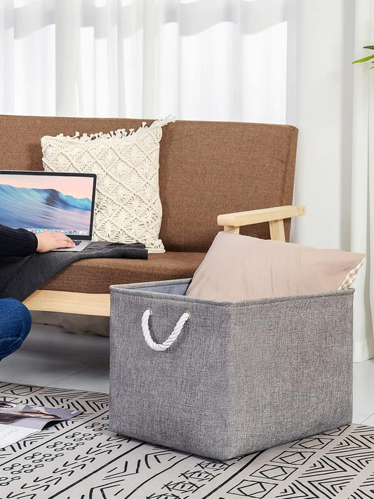 TheWarmHome Storage Bins Basket - Storage Baskets for Organizing Shelves,Home Closet Organizer for Book Shelf Organization,Fabric Storage Cubes,Medium Decorative Grey Basket Gift