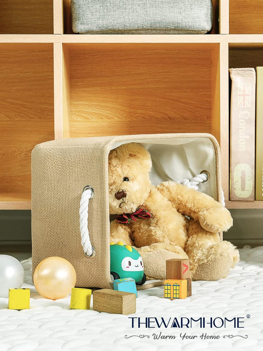TheWarmHome Storage Basket for Organizing - Small 6 Pack 11.8x7.8x5.2 inch Gifts for Empty with Rope, Fabric Storage Cubes for Decorative Cloth Dog Livehome (White)