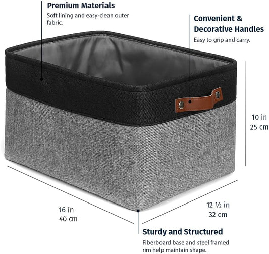 OrganiHaus Extra Large Fabric Storage Bins for Shelves 16x13in, Closet Storage Baskets for Shelf Organizing, Canvas Rectangle Bins for Organization, Linnen Baskets for Organizing - Gray/Black