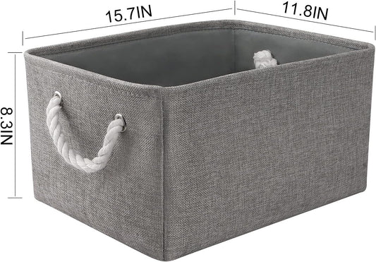 TheWarmHome Decorative Basket Rectangular Fabric Storage Bin Organizer Basket with Handles for Clothes Storage (Brown,Large-3Pack,15.7L*11.8W*8.3H)