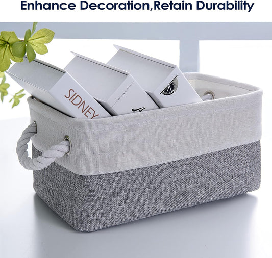 TheWarmHome Small Storage Baskets for Organizing,Storage Baskets for Shelves,Small Fabric Storage Bins W/Handles For Closet Nursery Toy Decorative Foldable (White&Grey, 11.8L*7.9W*5.2H-6 Pack)