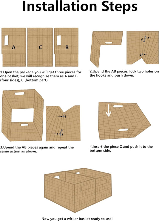 UBBCARE 4 Pack Wicker Basket, 11L×11H×10.5W inch Woven Paper Rope Storage Baskets for shelves, Foldable Cube Storage bin with Handle, Storage Basket for Organizing & Decor, Black