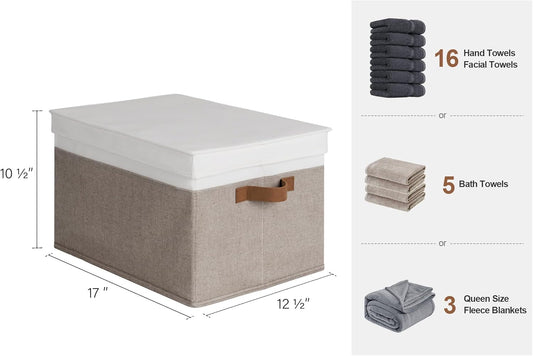 StorageWorks Storage Bins with Lids, Decorative Storage Boxes with Lid and PU Handles, Foldable Storage Baskets for Closet, Shelves, Stackable, Brown and White, Jumbo, 3-Pack