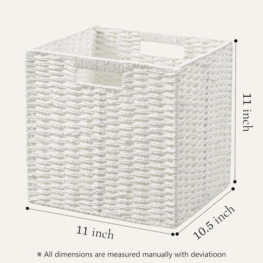 UBBCARE 3 Pack Wicker Basket, 11L×11H×10.5W inch Woven Paper Rope Storage Baskets for shelves, Foldable Cube Storage bin with Handle, Storage Basket for Organizing & Decor, White