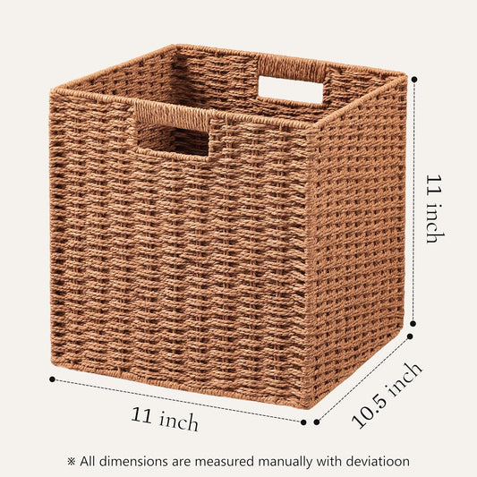UBBCARE 4 Pack Wicker Basket, 11L×11H×10.5W inch Woven Paper Rope Storage Baskets for shelves, Foldable Cube Storage bin with Handle, Storage Basket for Organizing & Decor, Caramel