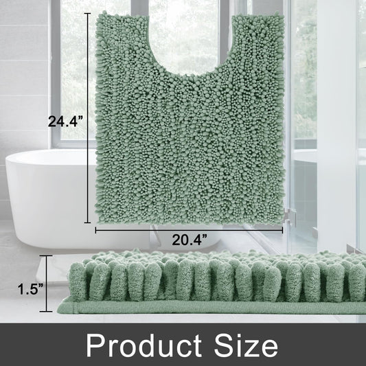 Yimobra Toilet Rug U Shaped Washable 24x20 Inch - Ultra Soft Absorbent Chenille Bath Rugs for Toilet, Quick Dry & Machine Washable, Non Slip Contour Bathroom Mat, Green