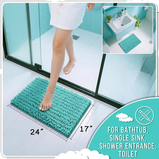 Yimobra Bathroom Rugs Non Slip Washable 24x17 Inch - Ultra Soft Absorbent Chenille Bath Mat, Quick Dry Shaggy Floor Carpet for Tub Shower, Lake Blue Home Decor Accessories