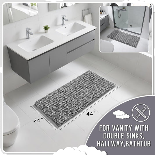 Yimobra Long Bathroom Rugs Non Slip Washable 44x24 Inch - Ultra Soft Absorbent Chenille Bath Mat, Quick Dry Shaggy Floor Carpet for Tub Shower, Gray Home Decor Accessories