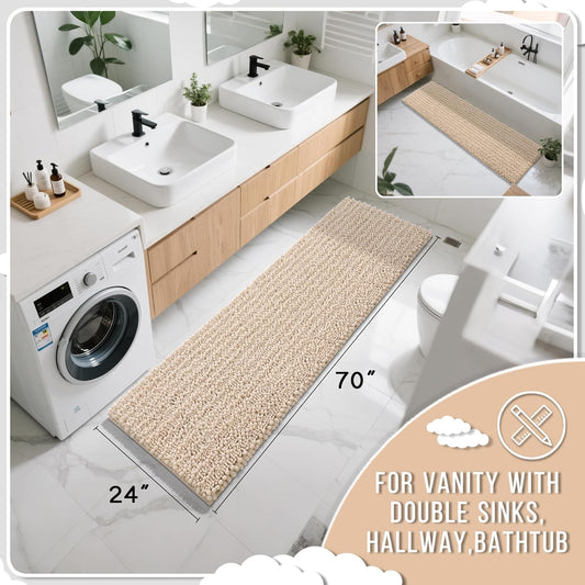 Yimobra Bathroom Runner Rug 60x24 Inch - Extra Long Non Slip Chenille Bath Mat, Soft & Absorbent, Machine Washable Shaggy Hallway Carpet for Vanity Tub Shower, Pale Khaki Home Decor Accessories