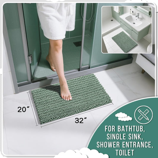 Yimobra Bathroom Rugs Non Slip Washable 32x20 Inch - Ultra Soft Absorbent Chenille Bath Mat, Quick Dry Shaggy Floor Carpet for Tub Shower, Green Home Decor Accessories