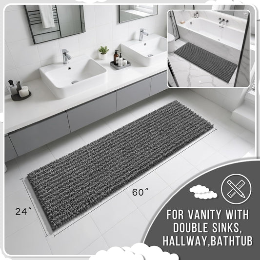 Yimobra Bathroom Runner Rug 60x24 Inch - Extra Long Non Slip Chenille Bath Mat, Soft & Absorbent, Machine Washable Shaggy Hallway Carpet for Vanity Tub Shower, Dark Gray Home Decor Accessories