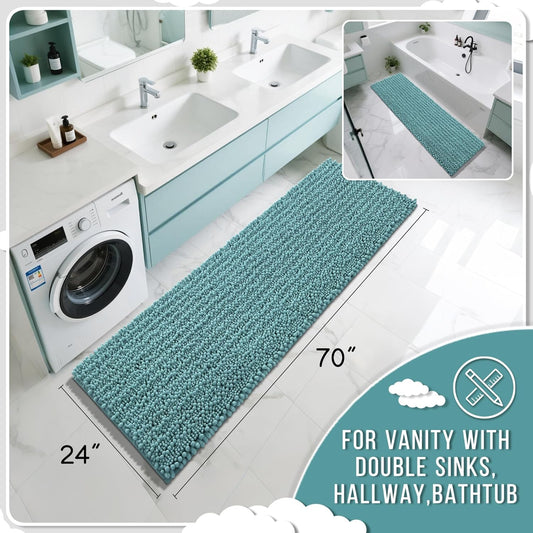 Yimobra Bathroom Runner Rug 70x24 Inch - Extra Long Non Slip Chenille Bath Mat, Soft & Absorbent, Machine Washable Shaggy Hallway Carpet for Vanity Tub Shower, Teal Blue Home Decor Accessories