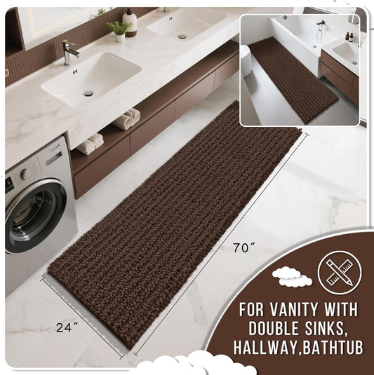 Yimobra Bathroom Runner Rug 70x24 Inch - Extra Long Non Slip Chenille Bath Mat, Soft & Absorbent, Machine Washable Shaggy Hallway Carpet for Vanity Tub Shower, Brown Home Decor Accessories