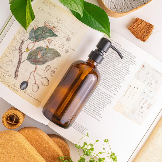MaisoNovo Glass Hand Soap Dispenser | Dish Soap Dispenser for Kitchen | 16.9oz Amber Bottles with Black Bamboo Pump | Bathroom Lotion Dispenser