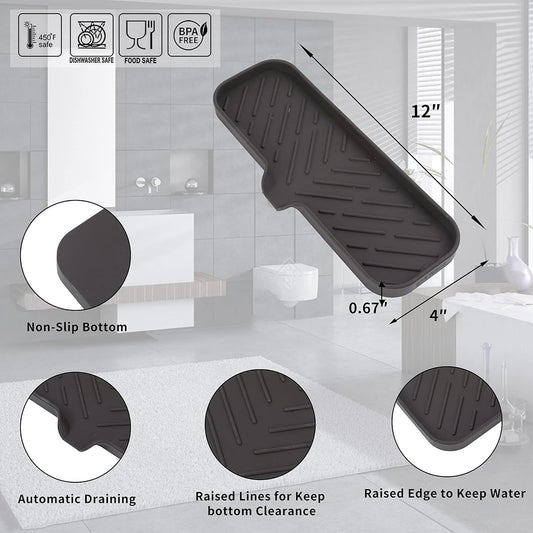 Silicone Bathroom Soap Dishes with Drain Spout-Bathroom and Kitchen Sink Organizer,Sponge Holder,Dish Soap Tray,Perfect for Dispenser,Scrubber,Bottle,Cup on Sink or Counter-Coffee 12"×4"