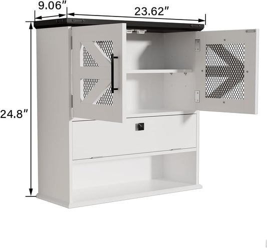 Bathroom Wall Cabinet with 2 Door Adjustable Shelves, Over The Toilet Storage Wall Mounted Medicine Cabinets for Bathroom Laundry Room