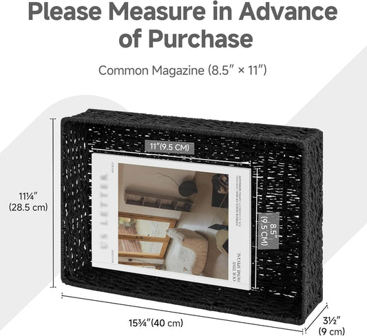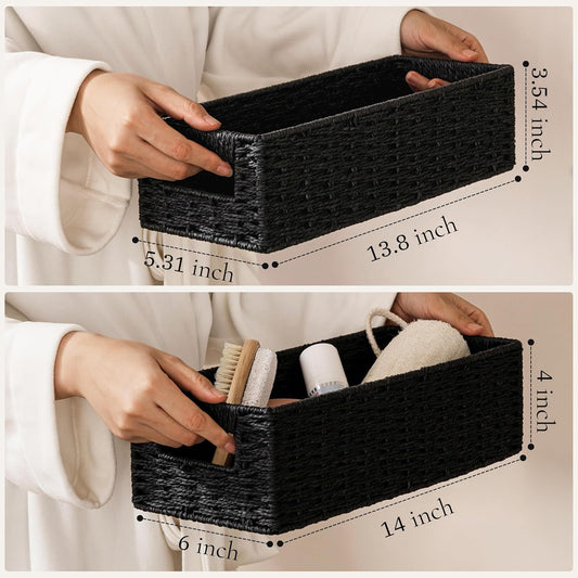 UBBCARE Toilet Tank Basket for Bathroom, Hand Woven Paper Wicker Basket for Organizing, Countertop Decorative Storage Basket with Handles, 2-Pack, Black