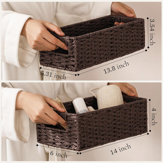 UBBCARE Toilet Tank Basket for Bathroom, Hand Woven Paper Wicker Basket for Organizing, Countertop Decorative Storage Basket with Handles, 2-Pack, Dark Brown