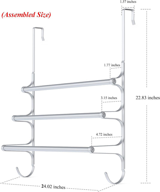 Over The Door Towel Rack, Triple Towel Storage Holder with Hooks, 24.02 Inches Towel Bar Hanger Towel Racks for Bathroom (Silver)