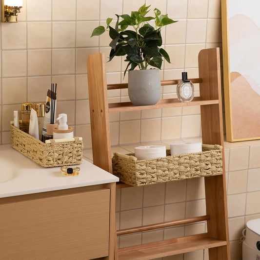 StorageWorks Large Water Hyacinth Tray for Bathroom, Wicker Storage Basket for Shelves, Handwoven Natural Hyacinth Baskets for Organizing, 2-Pack