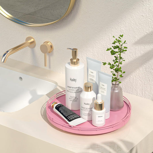 12" Oak Wood Bathroom Tray for Counter, Vanity Tray for Perfume Lotion Candle Makeup Jewelry Sink Soap Holder Turntable Dresser Organizer Countertop Coffee Table Decor Organization and Storage Pink