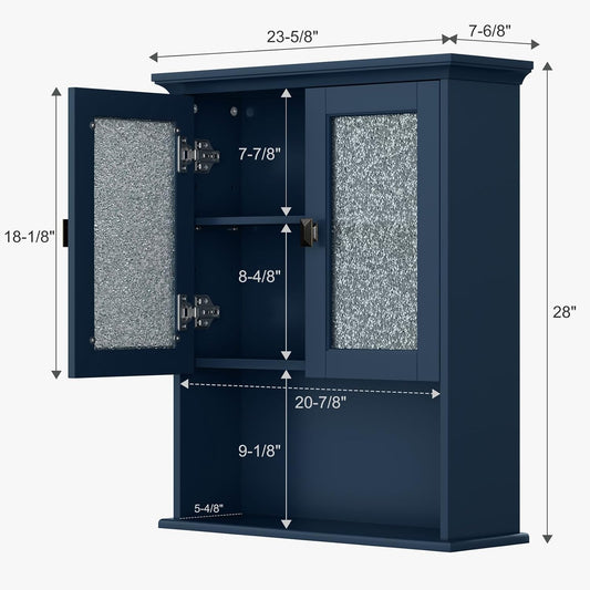 Bathroom Cabinet Wall Mount, Medicine Cabinet Over Toilet Storage Cabinet with Glass Door Build-in Spirit Level Cupboard Hanging Storage for Bathroom Laundry Kitchen Living Room (Ultramarine)
