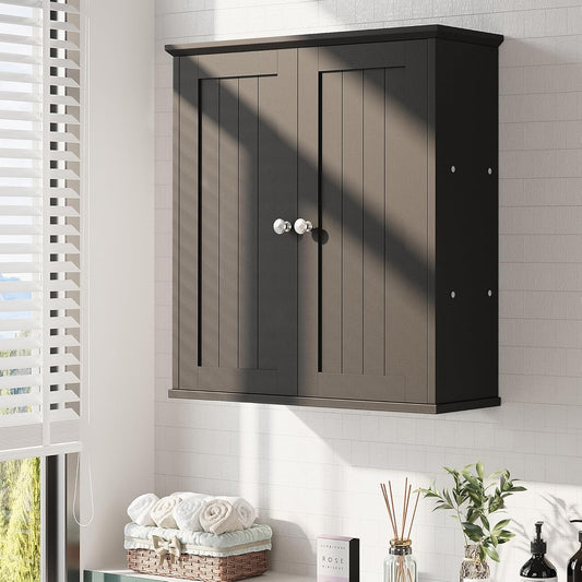 Meilocar Bathroom Wall Cabinet, Bathroom Cabinet Wall Mount, Over Toilet Space Saver Storage Cabinet, Wood Medicine Cabinets, Black