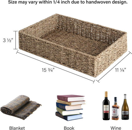 StorageWorks Large Seagrass Tray for Bathroom, Seagrass Storage Baskets for Shelves, Handwoven Natural Wicker Baskets for Organizing, 2-Pack