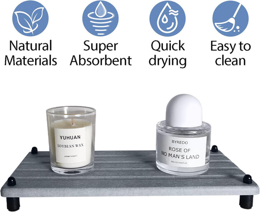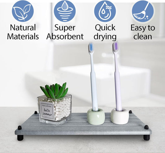 2 PCS Water Absorbing Stone Trays for Bathroom Counter, Fast-Drying Faucet Mat for Kitchen Sink, Diatomite Sink Caddy, Hand Soap Holder with Anti-Skid Feet(11" x 4.7" Gray)